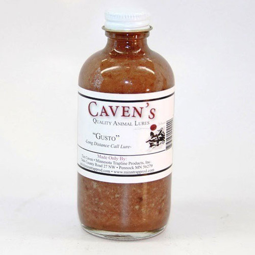 $ 7.50 USDGUSTO: (Call) A call lure with more than a "skunky" smell. You will detect a sweet odor consisting of a generous dose of castor and muskrat musk. A couple of "special agents" added, to top it off. Consists of a thick base, so it hangs in there for a long time. Use "Gusto" above your set during warm weather and directly at your set when it starts to cool down. Ideal for red fox, grey fox, coyote, bobcat, marten, and fisher. |